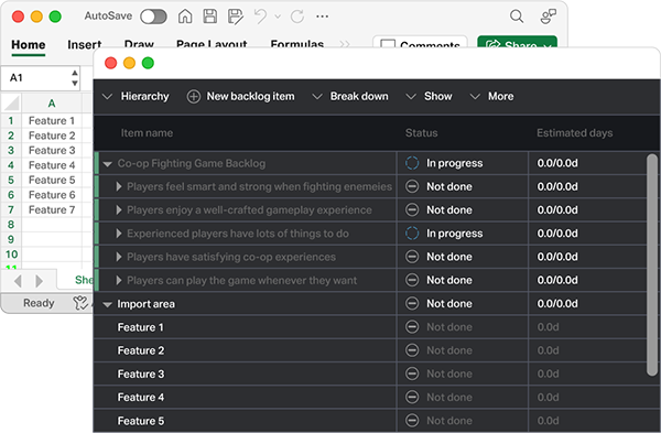 ✔️ Excel, MS Project, XML 등 다양한 포맷에서 데이터 가져오기