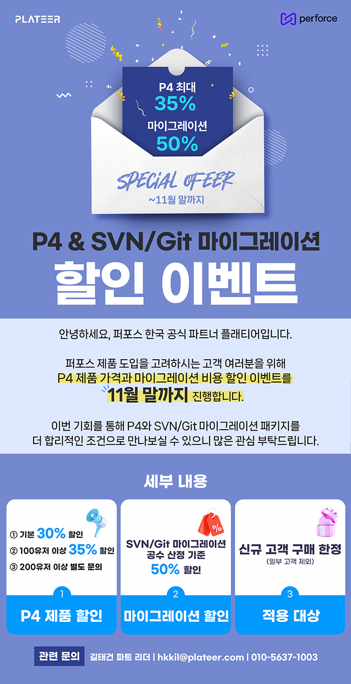 퍼포스 P4 & SVN/Git 마이그레이션 할인 이벤트