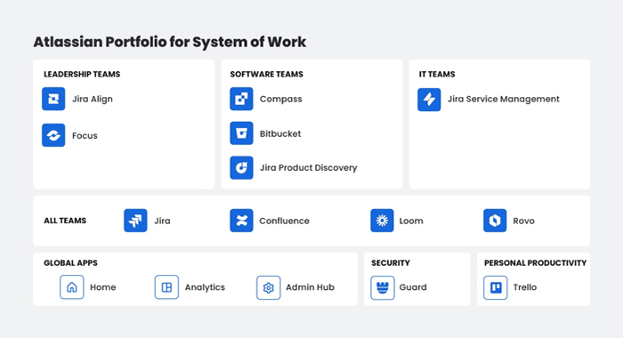 Jira, Confluence, Loom, Rovo로 구성